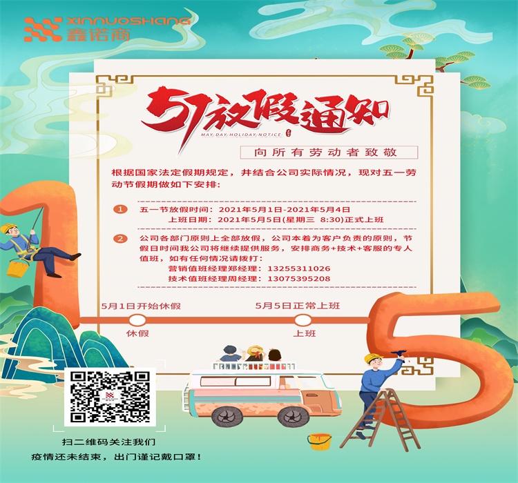山東鑫諾商與各位好友共度五一假期,祝大家假期快樂!
